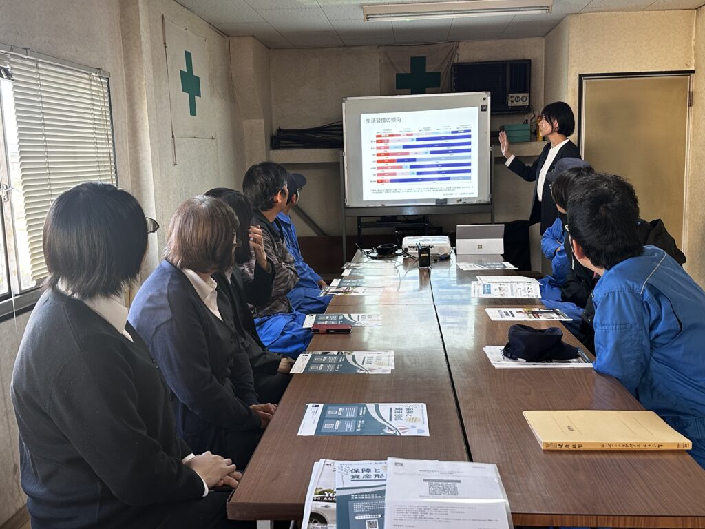 タイトルの内容で令和7年11月5日と11月6日の二日に分けて、アクサ生命保険株式会社の健康経営アドバイザーの方にセミナーを開催して頂きました。 当社の業務の事も考えて短い時間で内容をまとめて下さり、内…